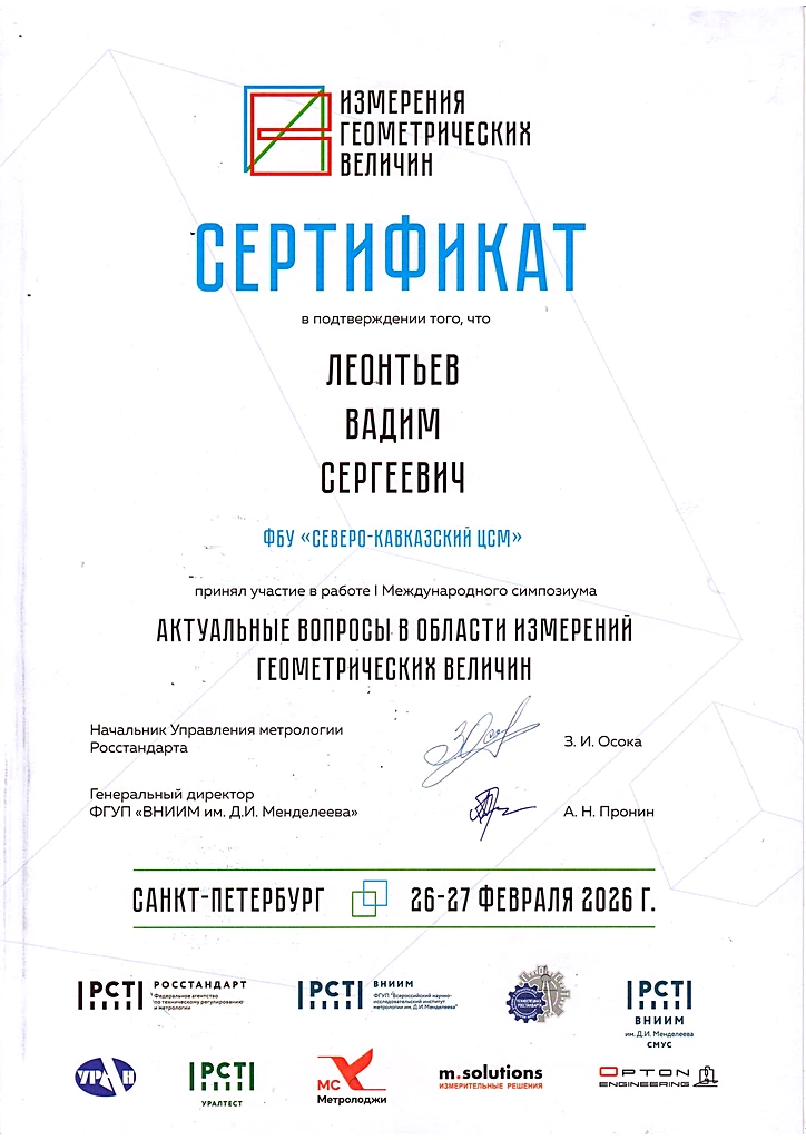 Ведущий специалист отдела поверки и калибровки механических и геометрических средств измерений Вадим Леонтьев принял участие в I Международном симпозиуме на тему: «Актуальные вопросы в области измерений геометрических величин», который прошел в Санкт-Петербурге.
